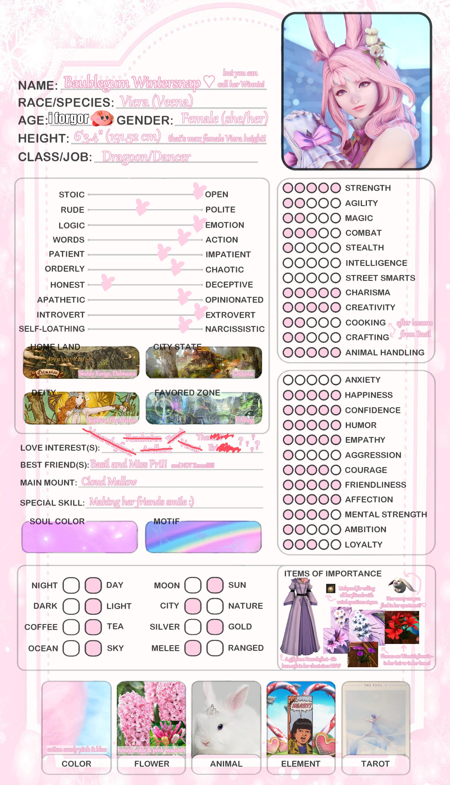 She's the Warrior of Light, even though she probably shouldn't be - her name is Baublegum Wintersnap, but all her friends call her Winnie!(Zenos is not her friend.